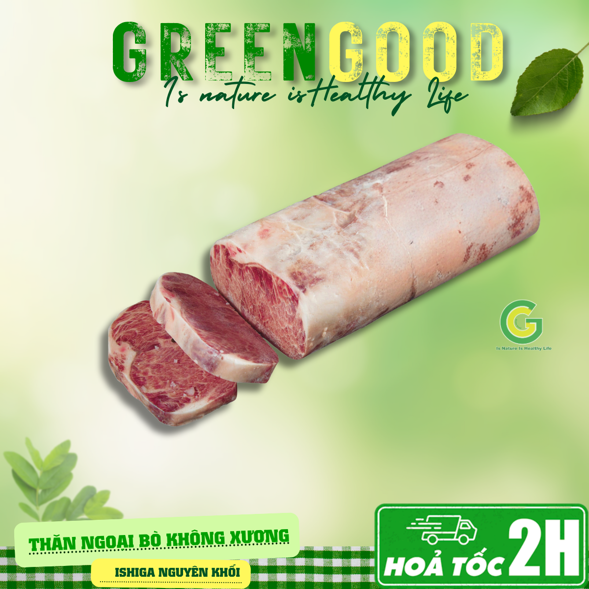 Cam kết chất lượng – uy tín – giá tốt nhất thị trường hiện nay. GREENGOOD chuyên cung cấp sỉ lẻ thăn ngoại bò KX Ishiga nguyên khối